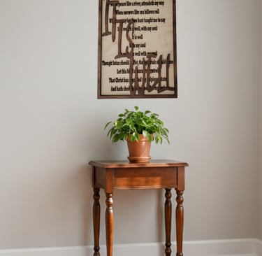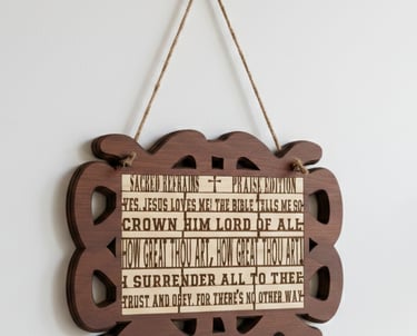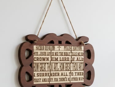 Faith-inspired décor celebrating beloved hymns and scripture, crafted to bring encouragement, beauty, and meaning into homes and special moments.