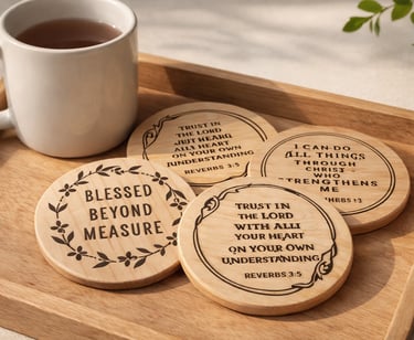 Faith-inspired coaster sets offering encouragement and warmth for homes, gatherings, and thoughtful gifts shared with family and friends.