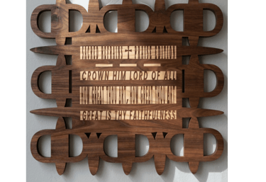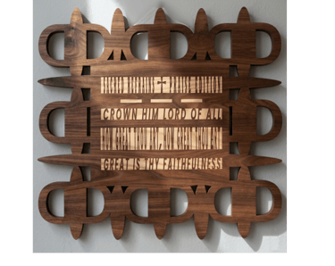 Layered designs inspired by beloved hymns of faith.